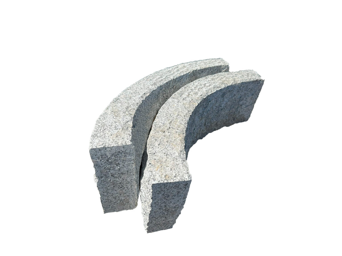 Med vår buede granitt i 0,5 radie kan du skape myke linjer og et eksklusivt uttrykk i hagen eller innkjørselen. Den passer perfekt til å ramme inn blomsterbed, plener og grusområder m.m, samtidig som den gir et elegant preg til gårdsplassen.